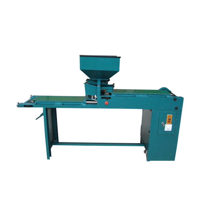 本機(jī)是一款簡單易操作的帶振動(dòng)的檢鈕機(jī),通過漏斗下面的振動(dòng)裝置,調(diào)好振動(dòng)頻率,使鈕扣順利的落在上層輸送帶上,左右各坐一人,排選一面。而后通過中間翻板落在下層輸送帶上,左右各一人挑選另一面。